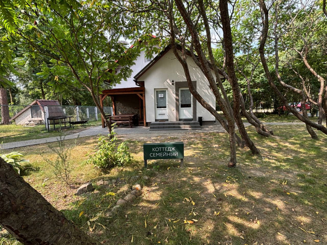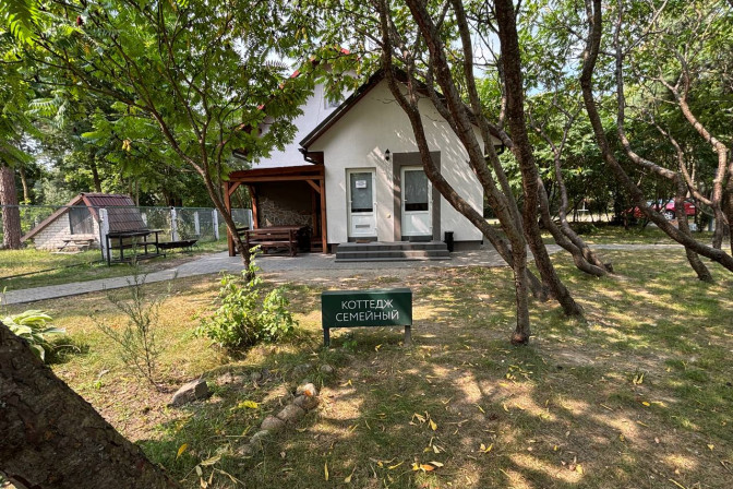 Семейный коттедж - для комфортного проживания 6 человек. В коттедже к услугам гостей спальня с двуспальной кроватью, комната-студия с оборудованной кухней, санузел, душ, постельное белье, полотенца.